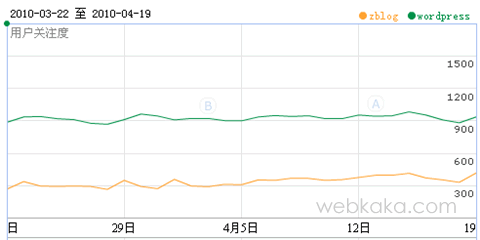 ????? 第二,現(xiàn)在越來(lái)越多的人甚至是初中生都建立了自己的獨(dú)立博客,這在前幾年是不可想象的,而在博客平臺(tái)的選用上,目前國(guó)內(nèi)用戶用得最多的無(wú)非就是用php開(kāi) 發(fā)的wordpress和用asp開(kāi)發(fā)的z-blog,而wordpress的用戶遠(yuǎn)比z-blog的用戶多,從百度指數(shù)的熱度可以看出來(lái)